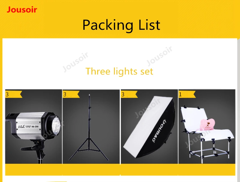250W Three Flash light Set Photography flash suit lighting kit Studio lamp stand softbox still life
