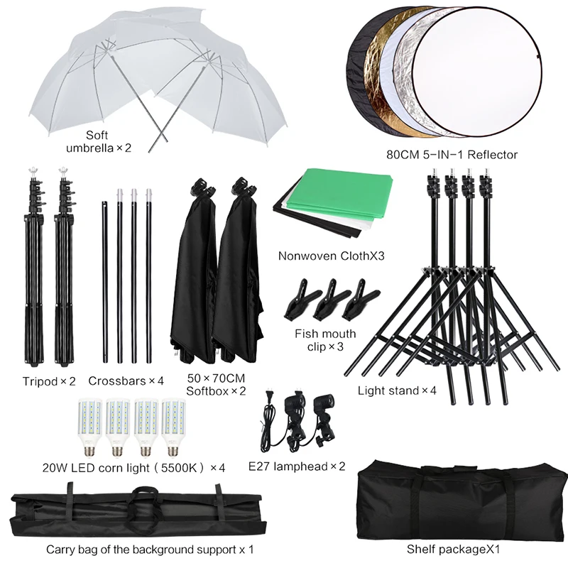 8.5* 10 ft Backdrop Support System Photography Video Studio Lighting Kit Umbrella Softbox Set Video