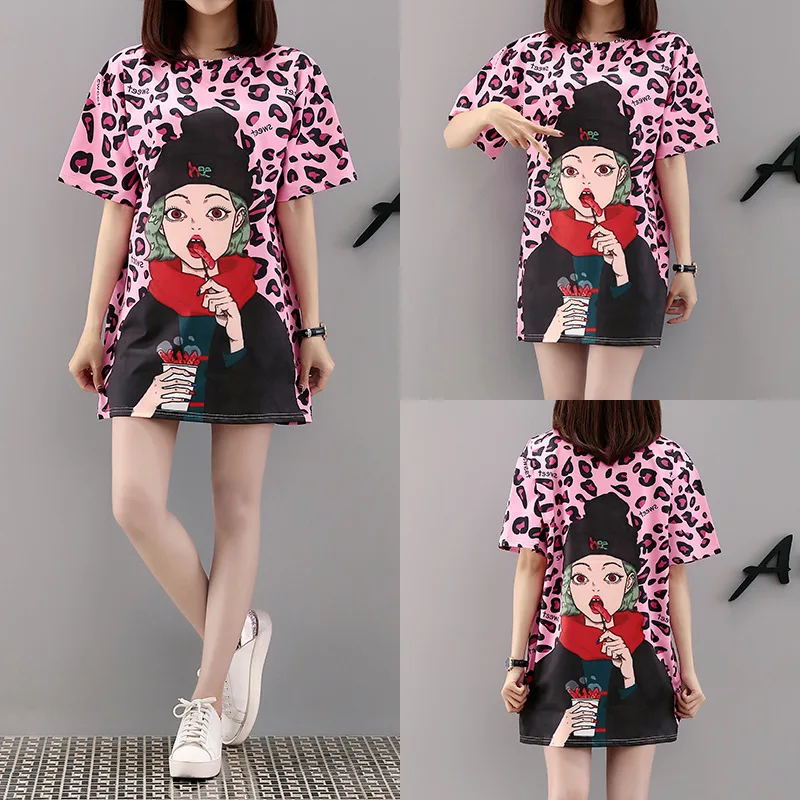 HIGH QUALITY Large Zipper Pack Photo Shoot 2019 Summer New Style Girl Cartoon Fat Mm Printed Short Sleeve Loose-