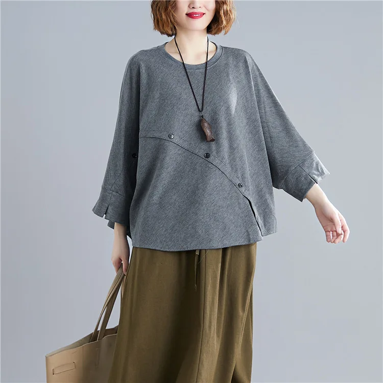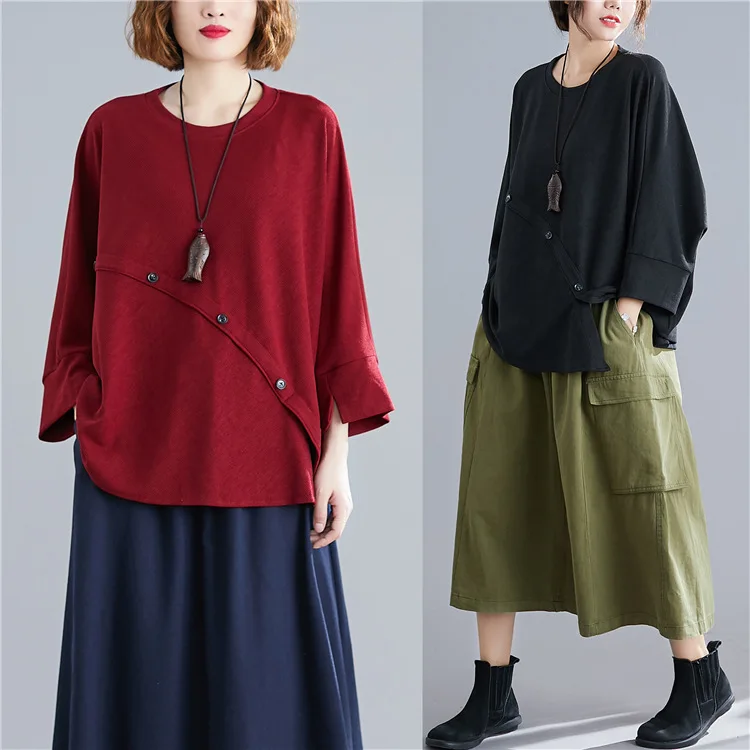 Photo Shoot 2019 Autumn Clothing Simple Bat Sleeve Irregular T-shirt Loose Fat Mm Large Size Tops W
