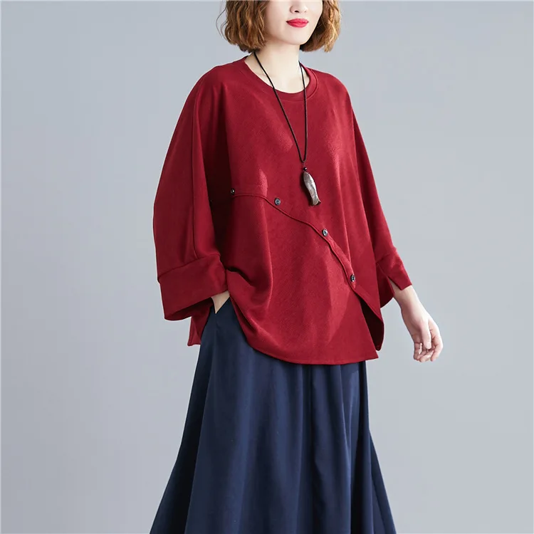 HIGH QUALITY Photo Shoot 2019 Autumn Clothing Simple Bat Sleeve Irregular T-shirt Loose Fat Mm Large Size Tops W