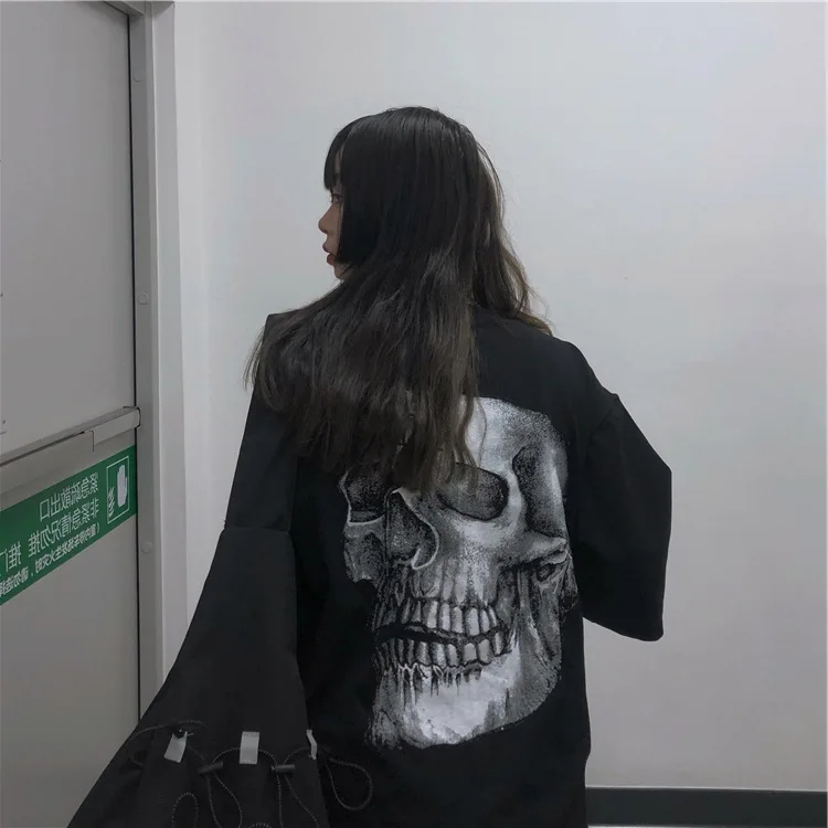 HIGH QUALITY Photo Shoot Summer Dark OF WOMEN'S Dress Retro Back Skeleton Printing Short-sleeved T-shirt Harajuk