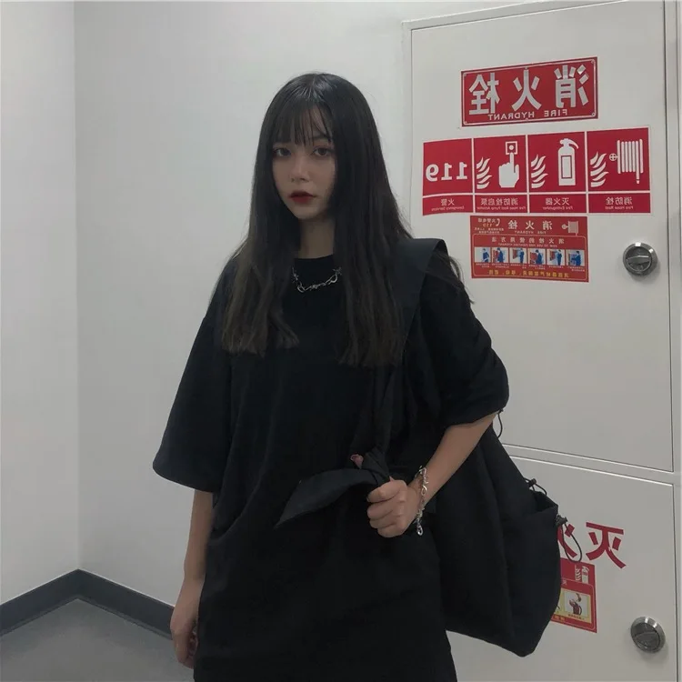 BEST QUALITY Photo Shoot Summer Dark OF WOMEN'S Dress Retro Back Skeleton Printing Short-sleeved T-shirt Harajuk