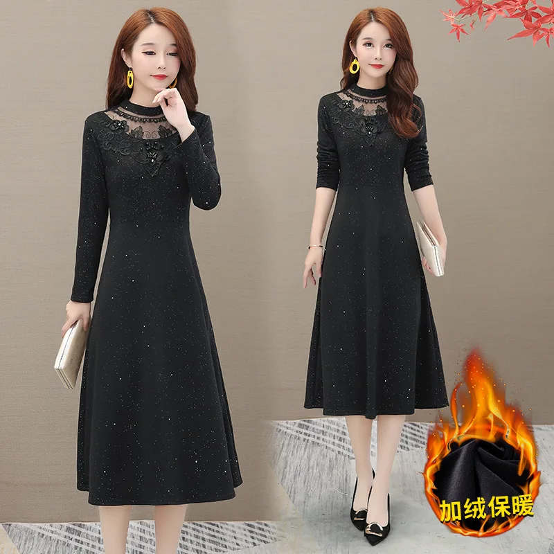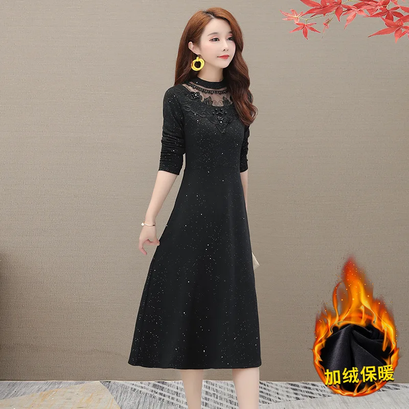 Photo Shoot 2019 Autumn And Winter Large Size Fat Mm Brushed And Thick Waist Hugging Slimming Long